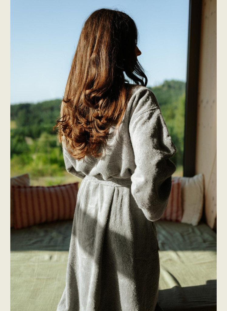 Bambusové vlákno je přirozeně antibakteriální, dobře saje a rychle schne. Ideální po sprše, do wellness nebo jen tak – pro chvíle, kdy nechcete nikam spěchat.