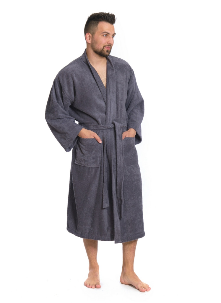 Materiál: 100 % bavlna Barva: tmavě šedá Úprava textilu: froté Střih županu: KIMONO, unisex Gramáž: 380 g/m² (kilt a župan), 480 g/m² (osuška) Certifikace: Oeko-Tex 100 % bavlna Rozměr kiltu: 50 × 140 cm (jednotná velikost) Detaily kiltu: kapsička, zapínání na knoflíčky, pružný pás Rozměr osušky: 90 x 150 cm