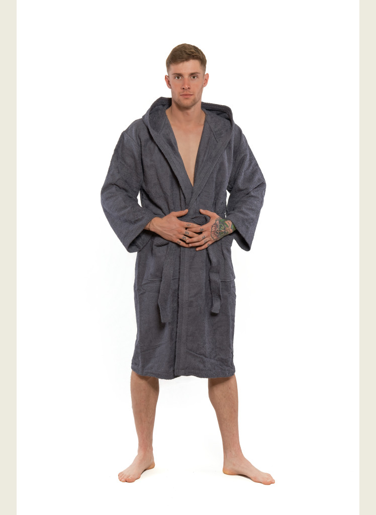 Materiál: 100 % bavlna Barva: tmavě šedá Úprava textilu: froté Střih županu: s kapucí, unisex Gramáž: 380 g/m² (kilt a župan), 480 g/m² (osuška) Certifikace: Oeko-Tex 100 % bavlna Rozměr kiltu: 50 × 140 cm (jednotná velikost) Detaily kiltu: kapsička, zapínání na knoflíčky, pružný pás Rozměr osušky: 90 x 150 cm