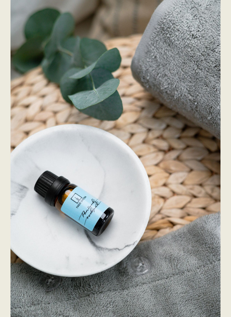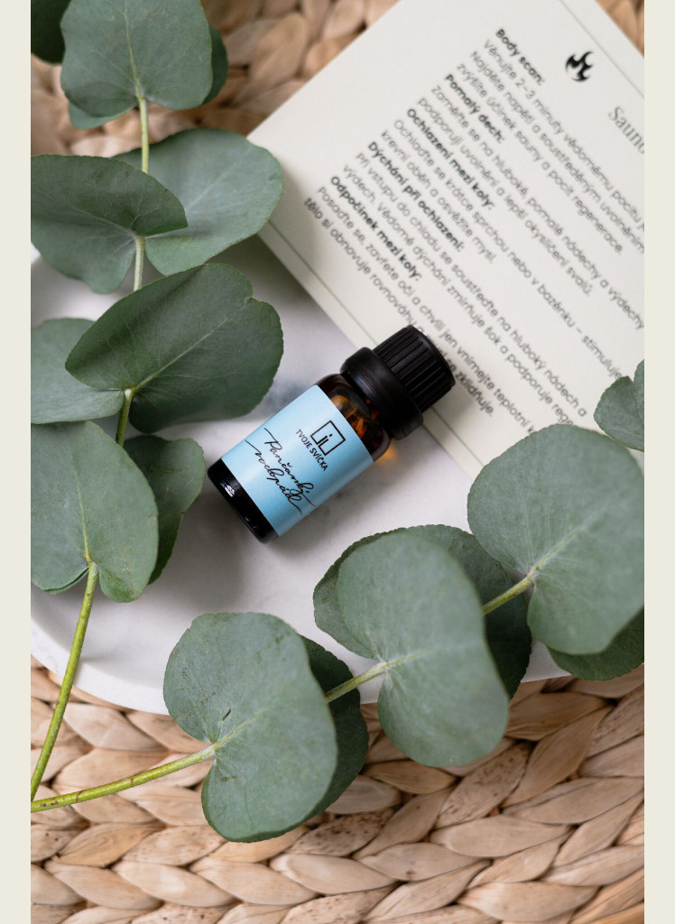 Směs eukalyptu, niaouli, borovice a červeného tymiánu pro svěží, saunově čistou atmosféru.
