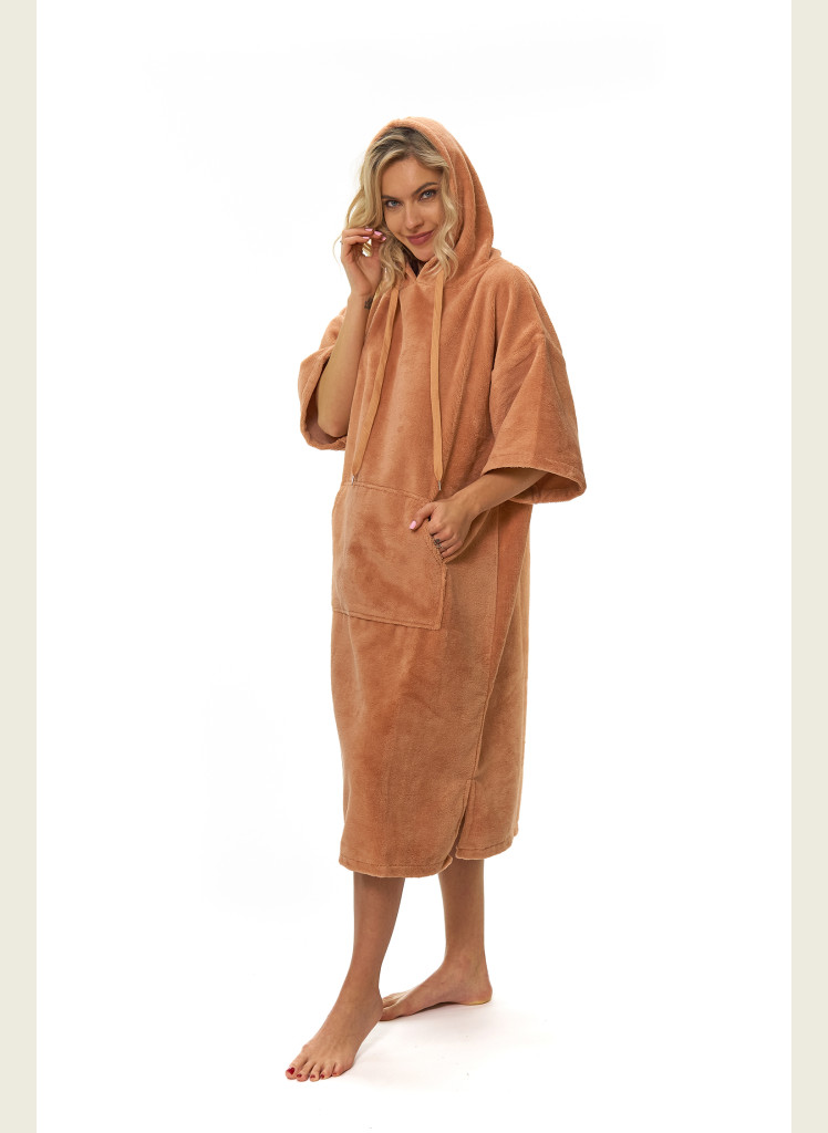 Pončo se snadno přetáhne přes hlavu a poskytne pohodlný úkryt. Jeho střih umožňuje rychlé převlékání z mokrých plavek. Kapuce se šňůrkou chrání hlavu před sluncem a větrem, zatímco klokaní kapsa zahřeje ruce.